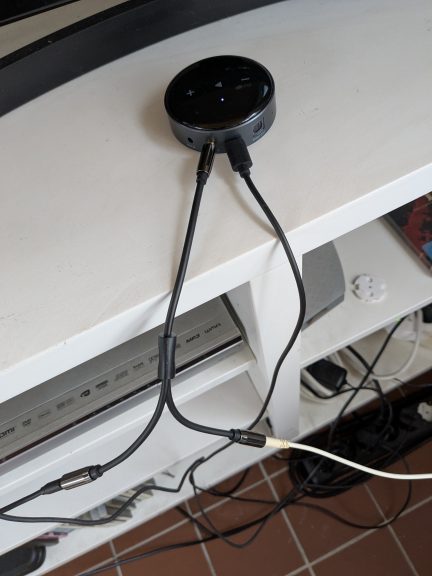 Und hier kommt der WiiM-Mini ins Spiel. Den habe ich mir vor etwa 2 Jahren gekauft, weil der Streamer für meine (analoge und sehr alte) Stereoanlage zwar gut funktioniert, aber eine App zum Abgewöhnen hat. Warum also nicht den WiiM-Mini per AUX mit den SoundTouch Lautsprechern vebinden? Gesagt, getan. Und siehe da: Das geht ganz einfach und funktioniert gut.